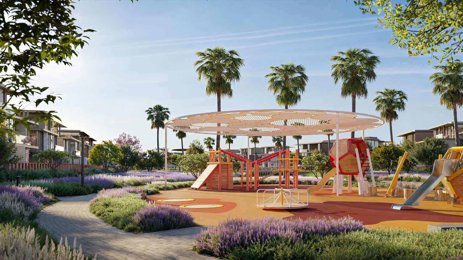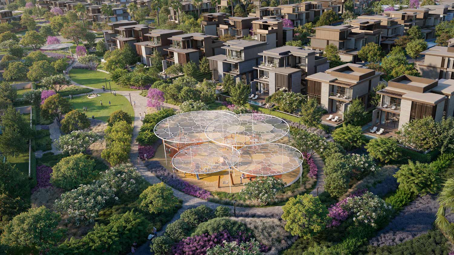 - Community: Private, gated neighbourhood with landscaped pathways, pocket parks, and distinctive architecture.