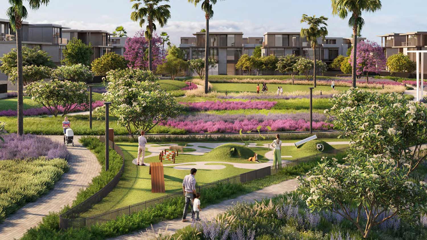 - Kids’ play areas, dog park, skate park
