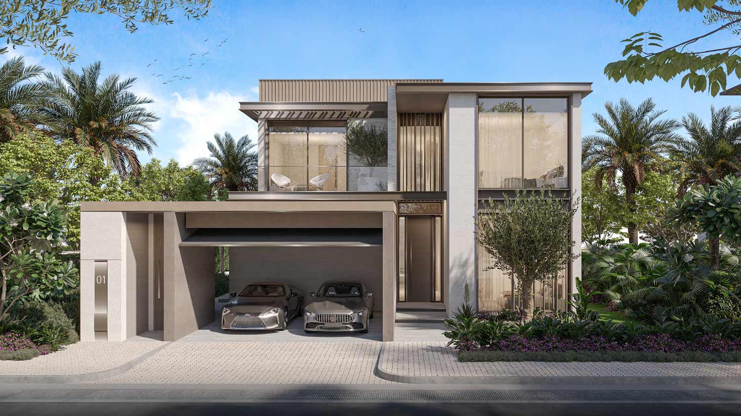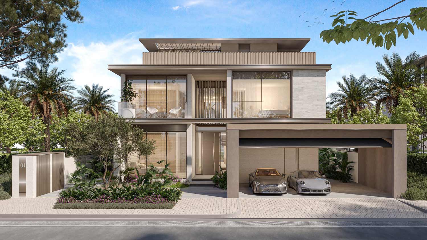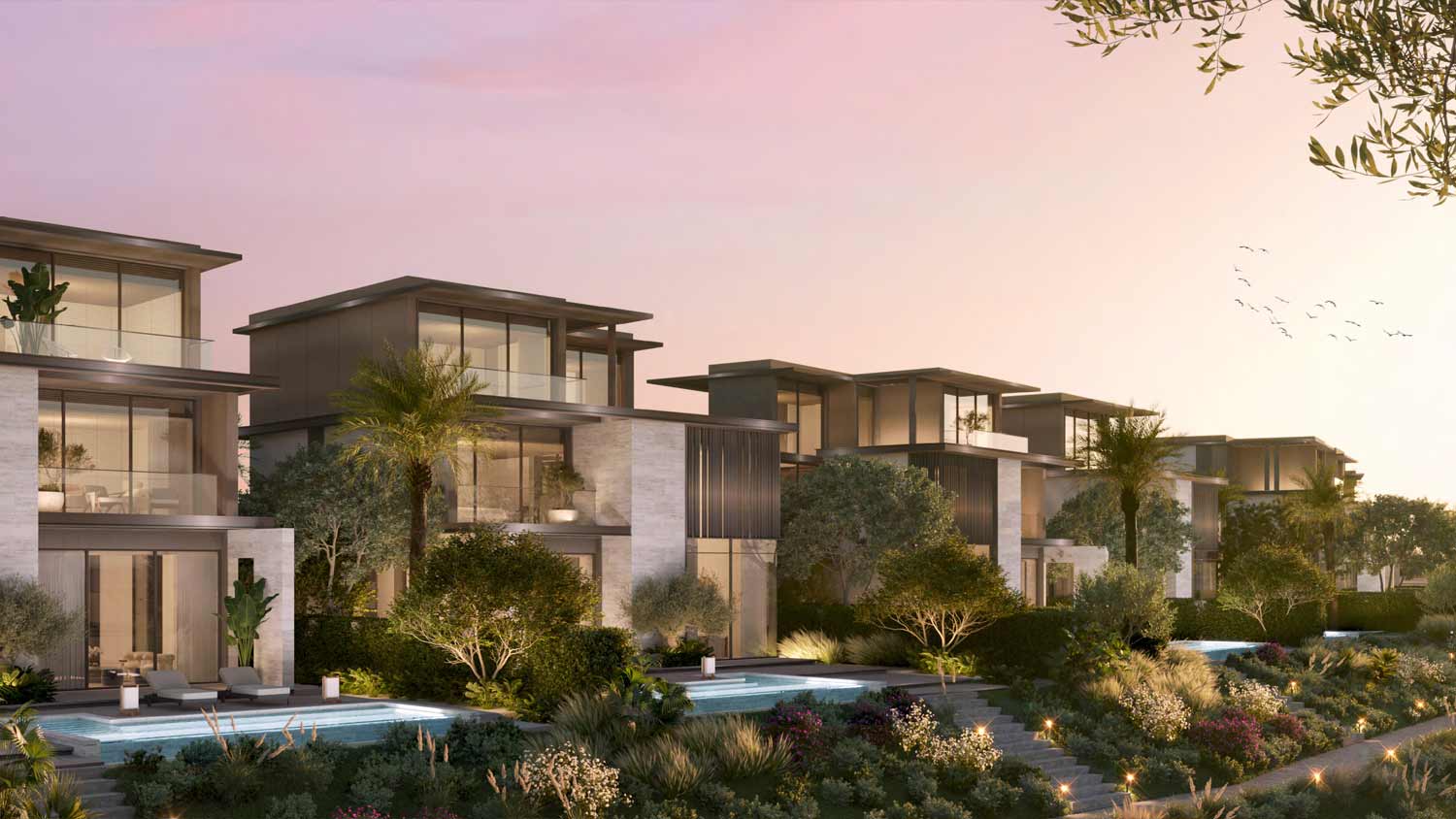 - Design: Contemporary villas with open-plan layouts, double-height living spaces, large terraces, and lift access in select units.