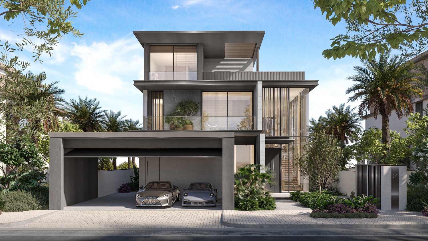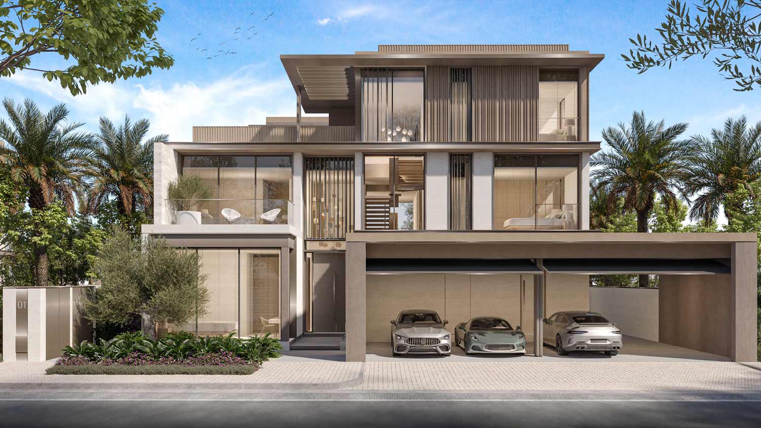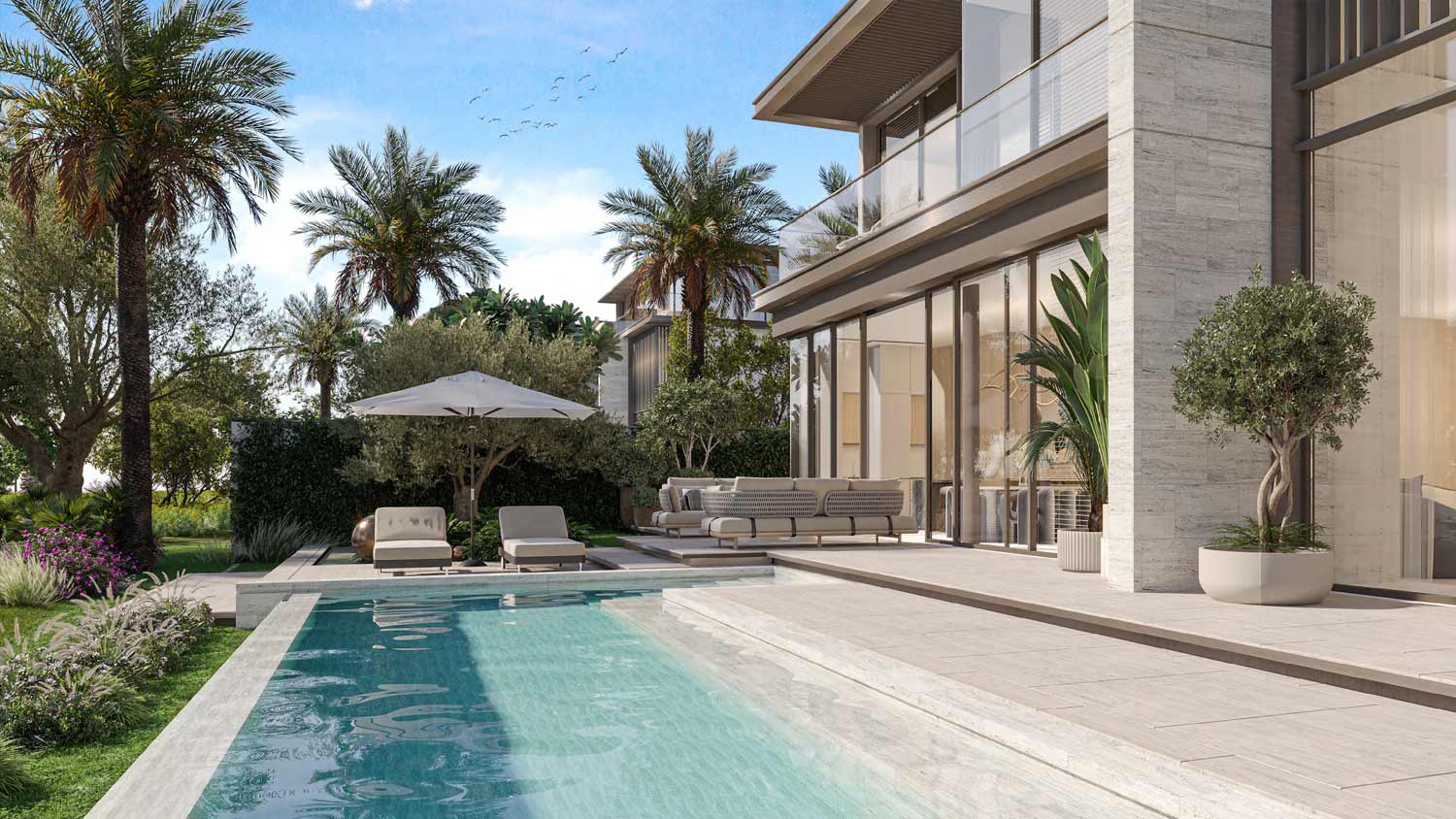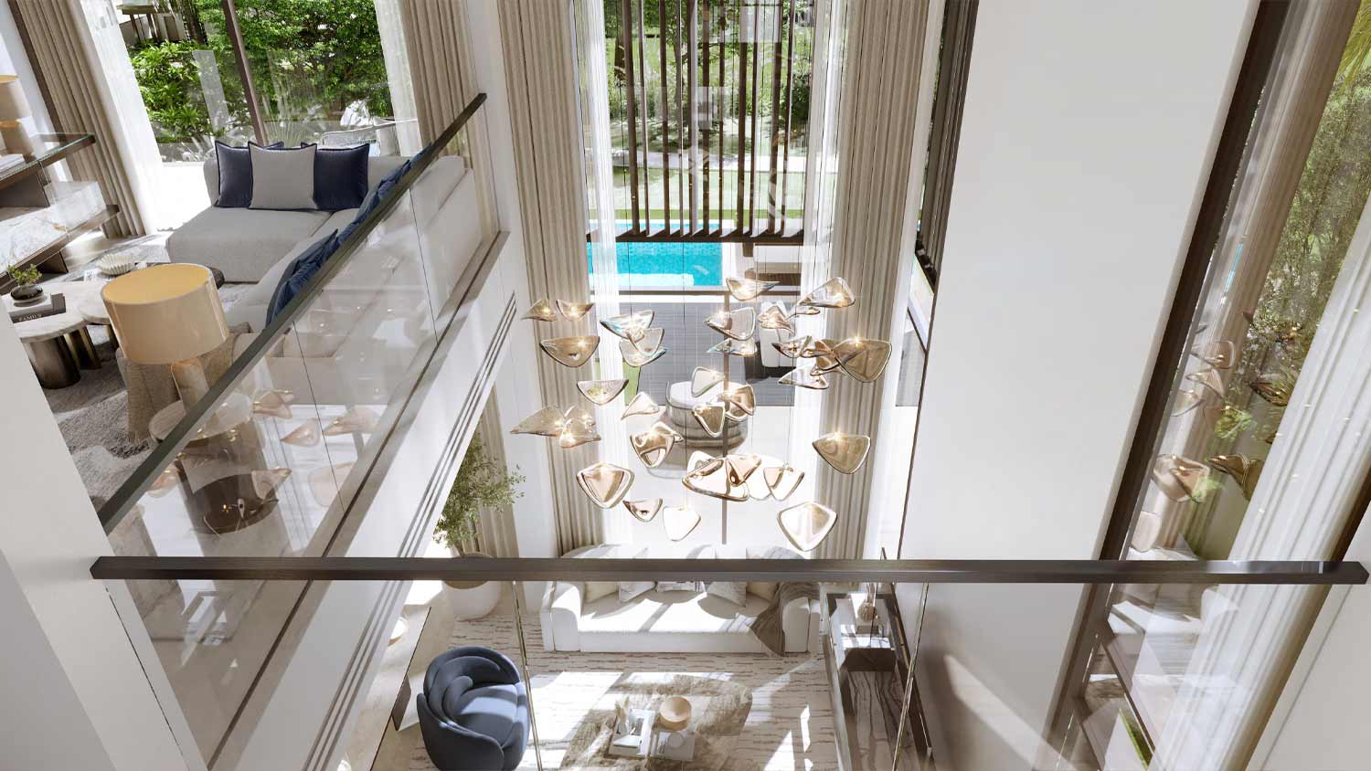 - Design: Contemporary villas with open-plan layouts, double-height living spaces, large terraces, and lift access in select units.