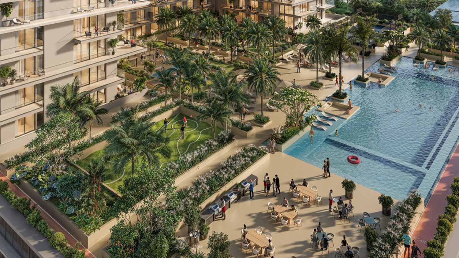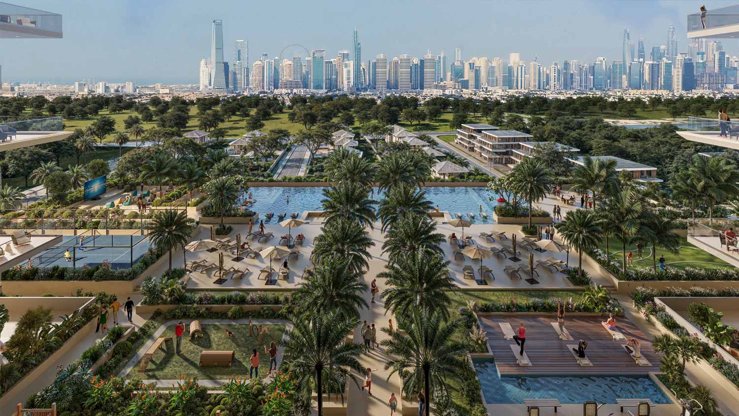 • Lifestyle-focused amenities including sunken pool, yoga studio, outdoor cinema, and padel court